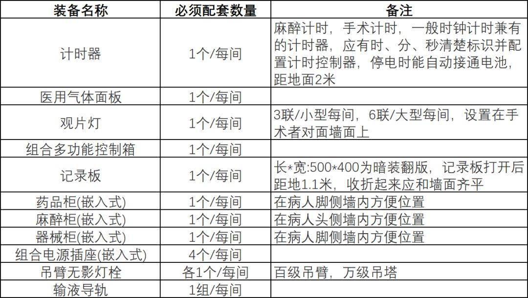 (1) 每间洁净手术室的基本装备符合下要求。