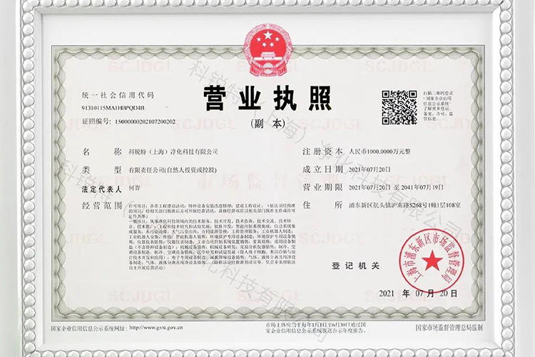 随着公司业务模块的不断扩大,为顺应市场发展需要,实施企业战略规划,加快市场的布局,推动科锐特集团化发展的良好趋势,给与客户更好的业务支持。2021年7月,科锐特(上海)净化科技有限公司正式成立!(净化工程)